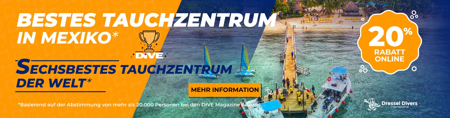 Es lebe Tauchen in Mexiko! Besuche eines unserer Wassersportzentren und genieße Ausflüge aufs Meer und rundherum. Die unzähligen Schnorchel- und Tauchplätze des Landes ermöglichen unseren Gästen eine unvergessliche Zeit mit einer Kombination aus Abenteuer und Erholung. Also, warum kommst du nicht nach Mexiko für den Tauchurlaub deines Lebens, um den Mix aus wunderschönen Stränden und ebenso atemberaubenden Riffen, mit Dressel Divers, zu genießen?