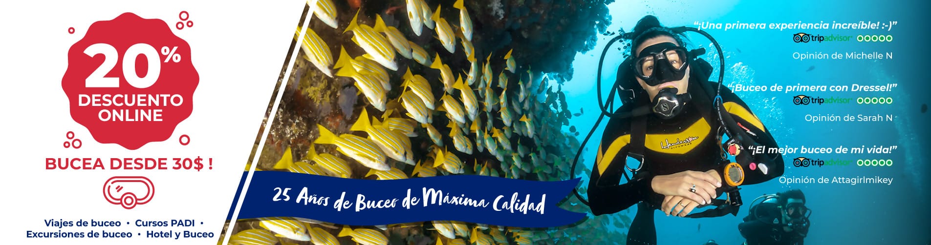 ¡Pague online antes de su llegada y AHÓRRESE hasta un 20% en actividades de buceo y snorkel!