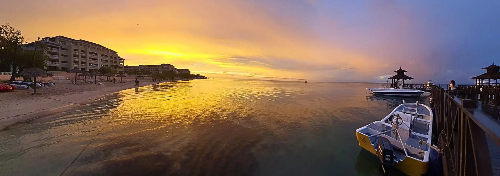 As the sun sets, we head out by boat.